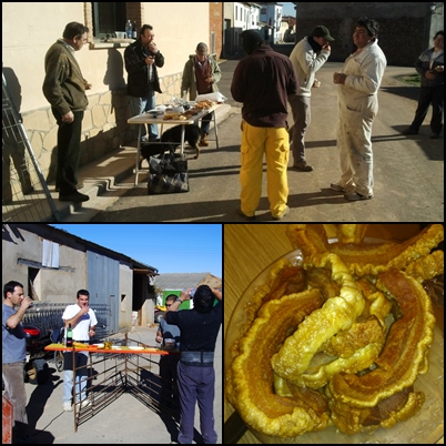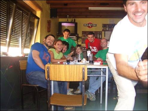 Pero no todo era trabajo claro, había que almorzar. Mª Ángeles nos preparaba unos riquísimos torreznos, Oscar traía fuet de su tierra, o Mª Jesús nos hacía tortilla… y para tragar nada mejor que un porrón de vino y gaseosa, había que reponer fuerzas para seguir con el tajo. Siempre había algún que otro torreño que se nos unía en tan “ardua” tarea…