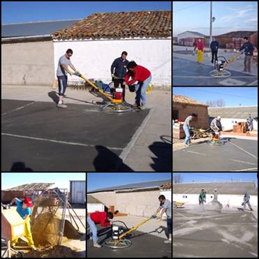 Y por fin, otra capa de cemento y a pasar el “helicóptero” para alisar. El patio tomaba forma.