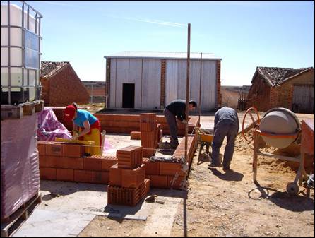 La casa ya iba cogiendo forma. Lo siguiente: tabicar, poner ventanas y enlucir las paredes.