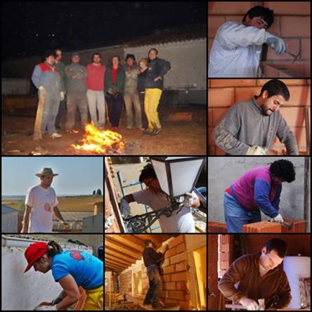Al final quedamos nosotros 9: Ángeles, Mª Jesús, Maite, Fer, Jaime, Manolo, Oscar, Pablo y Toño. Todos teníamos claro que no iba a ser fácil, que el proyecto exigía un gran compromiso y un gran esfuerzo, tanto económico como personal, pero también contábamos con un motor imprescindible: la ilusión. Y cierto es que no ha sido fácil, han sido muchos fines de semana sacrificados en la obra, madrugando, desplazándote cientos de kilómetros, renunciando a tu tiempo libre, a tu vida social, bajo la nieve, la lluvia o un sol, llegando de vuelta a casa cada domingo por la noche completamente agotados. Según pasaban los años las fuerzas se agotaban, las circunstancias de cada uno cambiaban y no siempre podíamos llevar el ritmo de trabajo previsto. Incluso no fueron pocas las veces que hubo tensiones personales, pero todo se supera, porque la motivación era más fuerte que todo lo demás, teníamos un objetivo firme y común: hacer una casa rural en Torreandaluz.